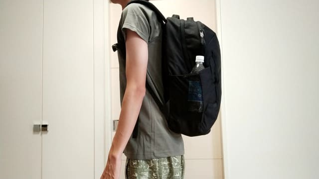 容量27Lは普段使いには十分なサイズ感で、通勤・通学に使いやすく、大きすぎない見た目なので割とスタイリッシュな服装にも合いやすいです。