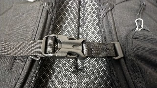 チェストベルトも付いているので、装着するとリュックと体との密着度が上がって揺れが減り、疲労軽減に役立ちます。