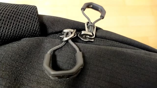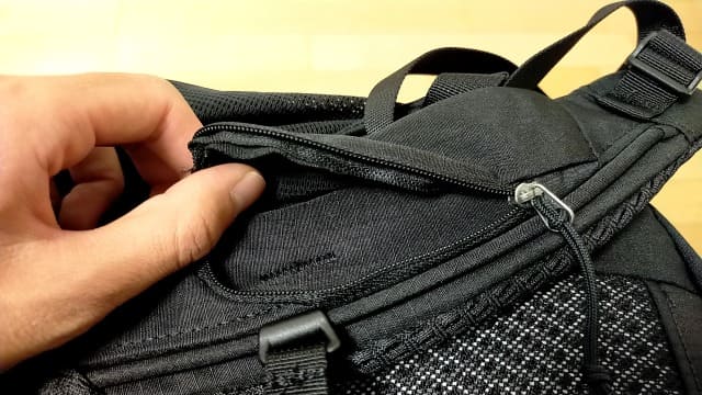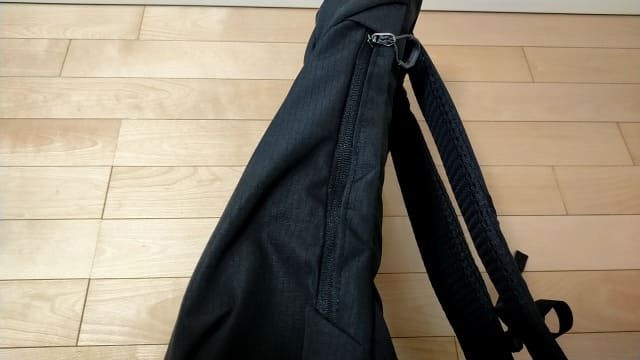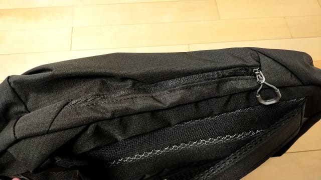 背負った時に右腕側に来るサイドにもサブ収納があります。(内部にはフック付き)