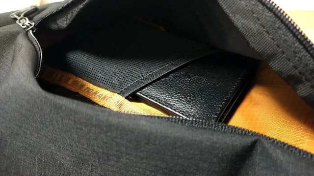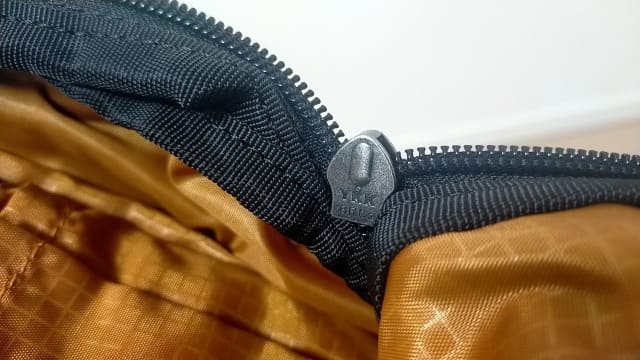 リップストップ加工が施された300デニールのポリエステルを使っていて、衝撃や傷に強く、ジッパーはYKK製で耐久性が高いと思います。