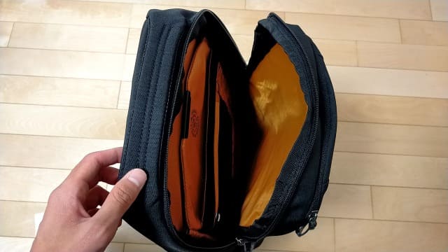 内部はオレンジ色で視認性が良く、物がどこにあるか把握しやすい。