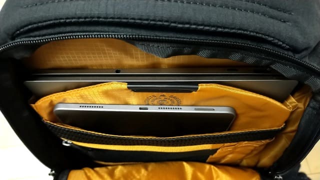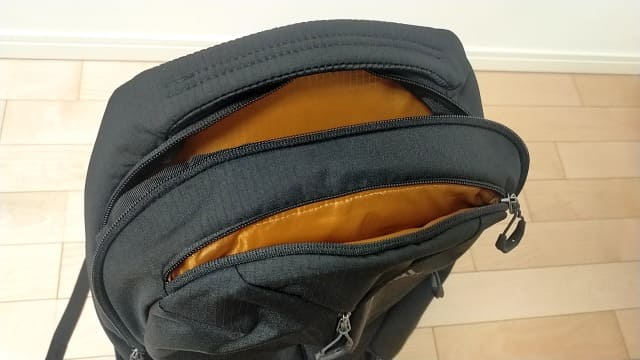 さらに背面側のメイン収納にはPC収納スペース&タブレット収納スペースの両方があり、物を小分けにして管理したい方にはかなり良いタイプだと思います。