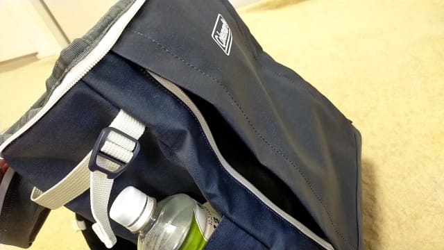 ※ファスナーは撥水加工がされているけど、猛烈な雨に打たれると、ファスナーから内部へ水がしみ込んでくる可能性があるから、防水リュックカバーを追加で買っておくとさらに安心。